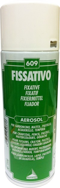 Vernice protettiva incolore per carboncini, matite, pastelli, acquerelli e tempere.