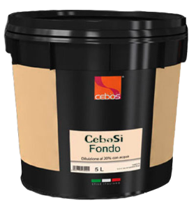 fondo acrilico all’acqua, dall’aspetto leggermente goffrato. Applicare il prodotto con rullo di pelo corto, in una o due mani fino a completa copertura del fondo. A essiccazione avvenuta di CeboSi Fondo procedere all’applicazione